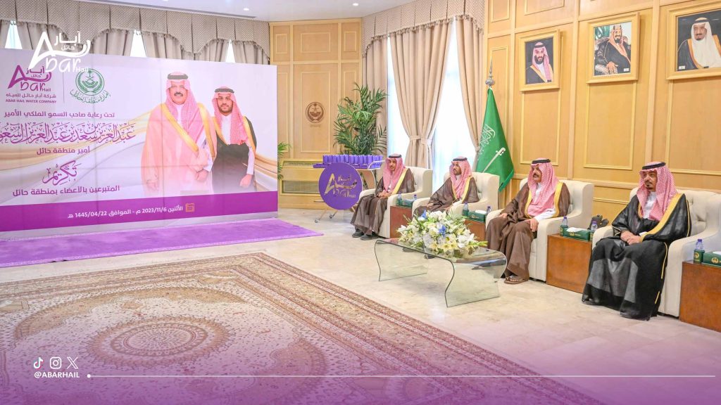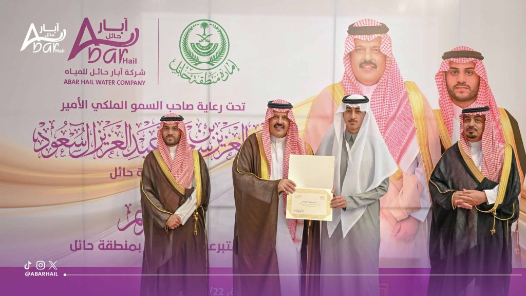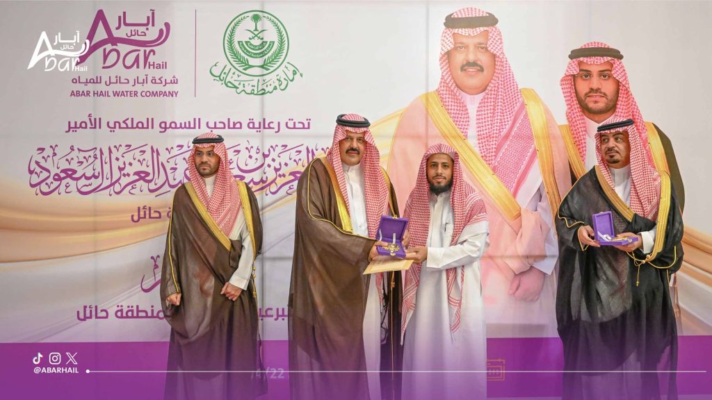وفي نهاية الحفل أشاد سمو أمير منطقة حائل بمبادرات شركة آبار حائل للمياه النوعية والهادفة، والتي تتبنى قيمة المسؤولية الاجتماعية وتعزيز دورها كقطاع خاص في تنمية البرامج الخيرية والصحية والاجتماعية للوطن والمواطن.